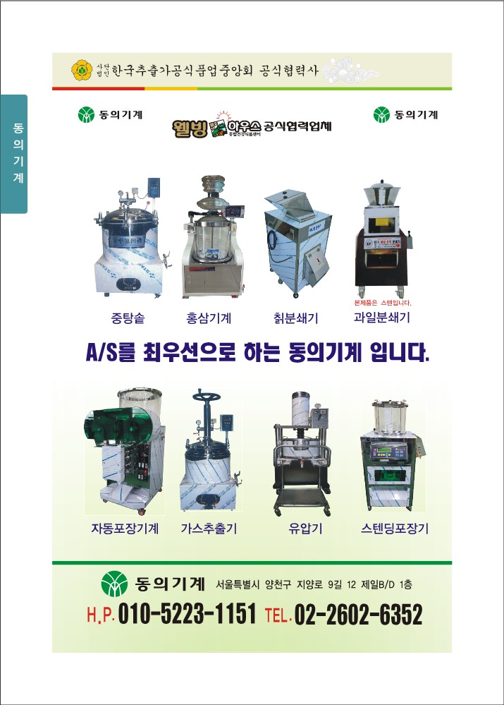 AS를 최우선으로 하는 동의기계 입니다. 자동포장기계, 약탕기, 홍삼제조기, 파우치 및 한방소모품 도ㆍ소매 판매, AS, 개원상담 가능합니다.